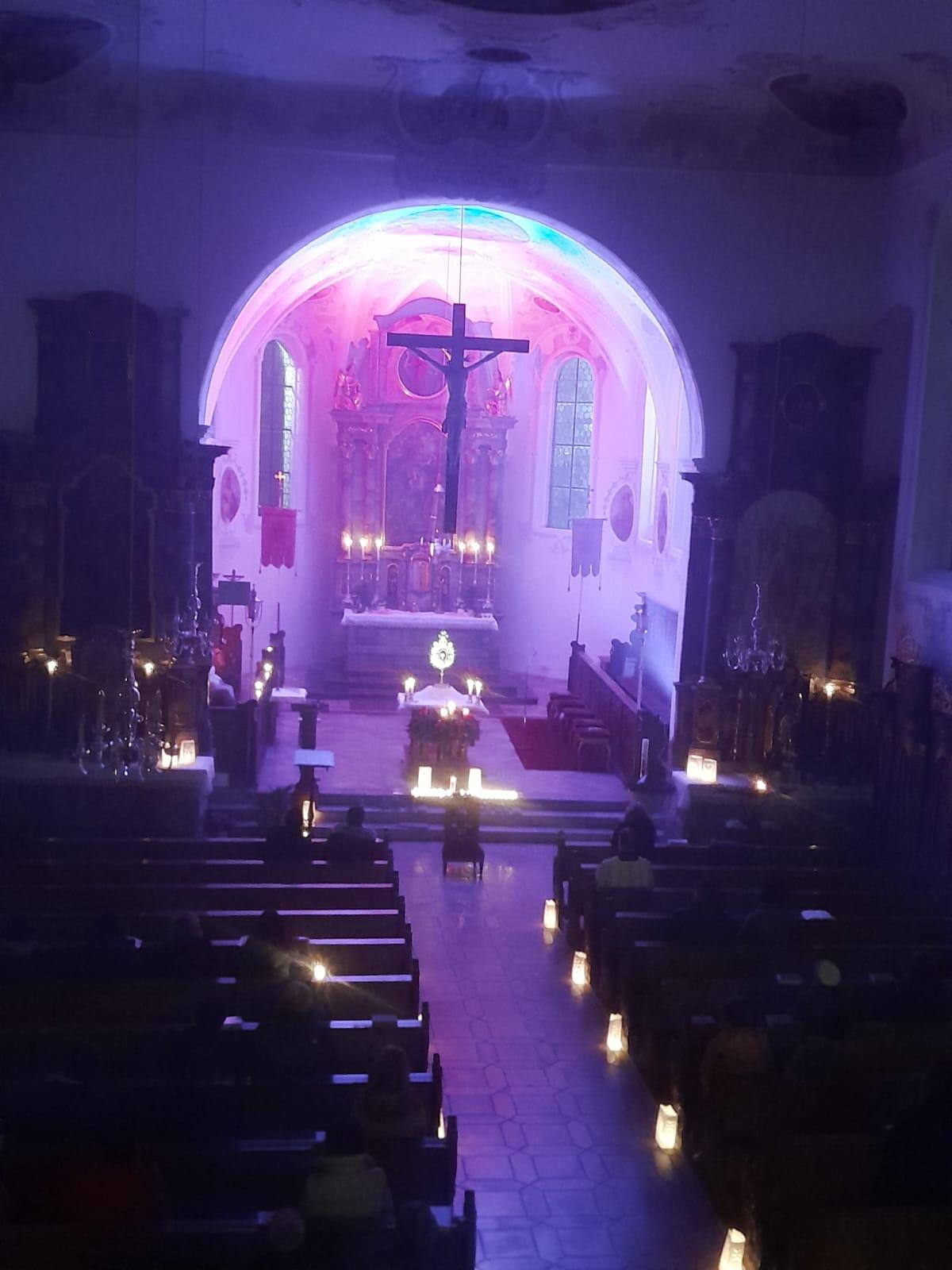 Der eucharistische Segen beschloss den Abend, zu dem sich zahlreiche Gläubige aus dem Aschberggebiet und darüber hinaus auf den Weg gemacht hatten.