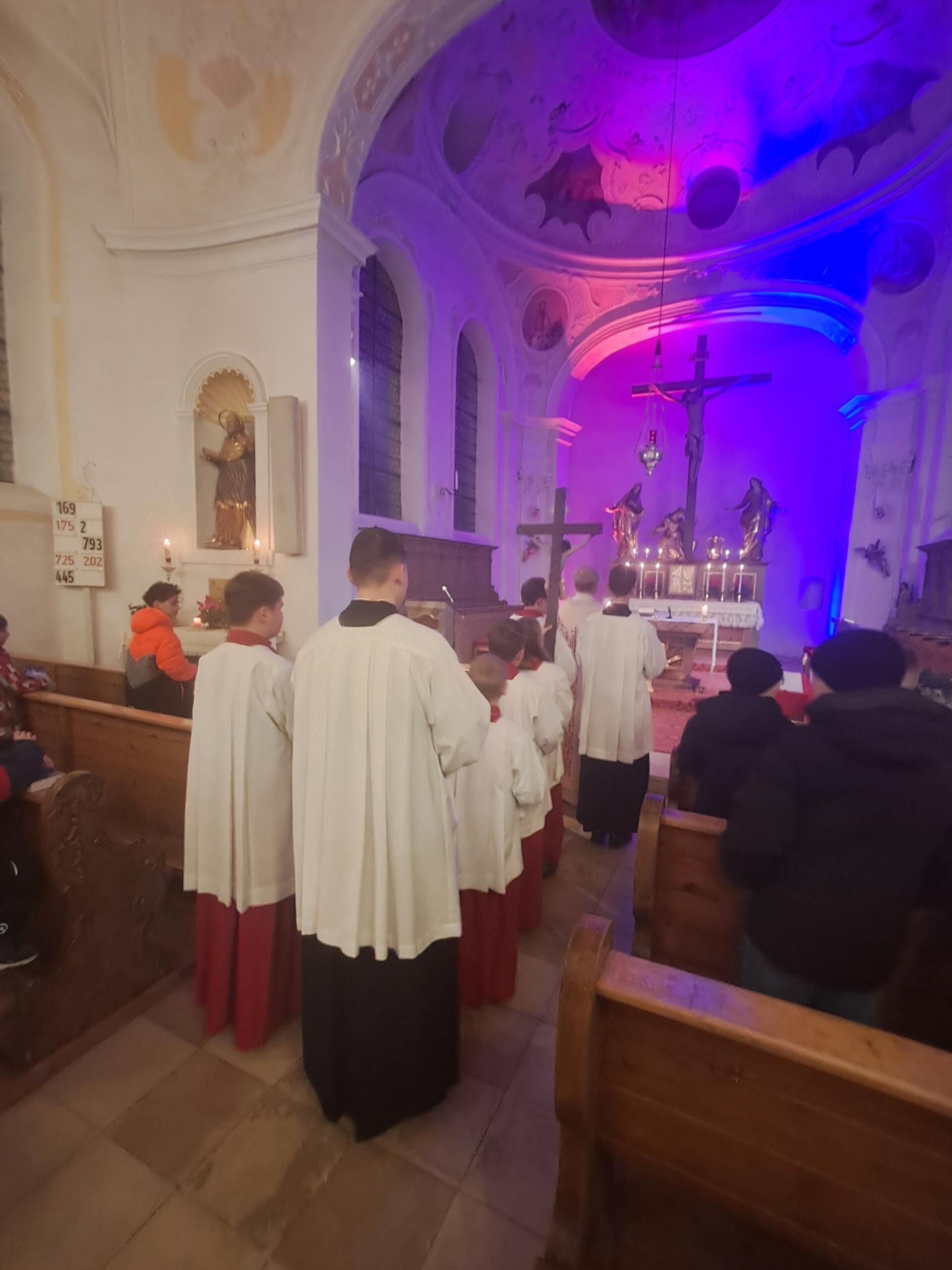 Der Gottesdienst wurde von Ministranten aus der Pfarreiengemeinschaft gemeinsam vorbereitet – sozusagen von Jugendlichen für Jugendliche. Am Ende bekamen alle noch eine Gebetskarte mit auf den weiteren Weg. Nach der feierlichen heiligen Messe klang der Abend gemütlich bei Lagerfeuer, Punsch und Bratwurst aus. Die Freiwillige Feuerwehr Weisingen sorgte dankeswerterweise für die leibliche Stärkung.